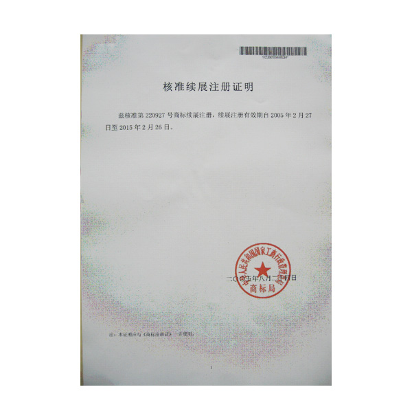 “TSZ” 牌商標續(xù)展證明:2005年2月27日第二次續(xù)展